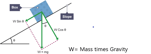 Fparallel is the parallel force, - m is the mass of the object, g is the acceleration due to gravity (approximately 9.8 m/s2 on Earth), and θ is the angle of the inclined plane with respect to the horizontal.