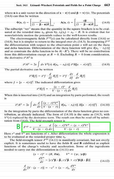 Radiation & Non-Radiation Terms in Equation B for Moving Charged Particle