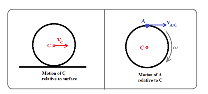 The problem involves a cylinder rolling without slippage on a horizontal plane, with a focus on determining the radius of curvature of the trajectories of points A and B on the cylinder.
