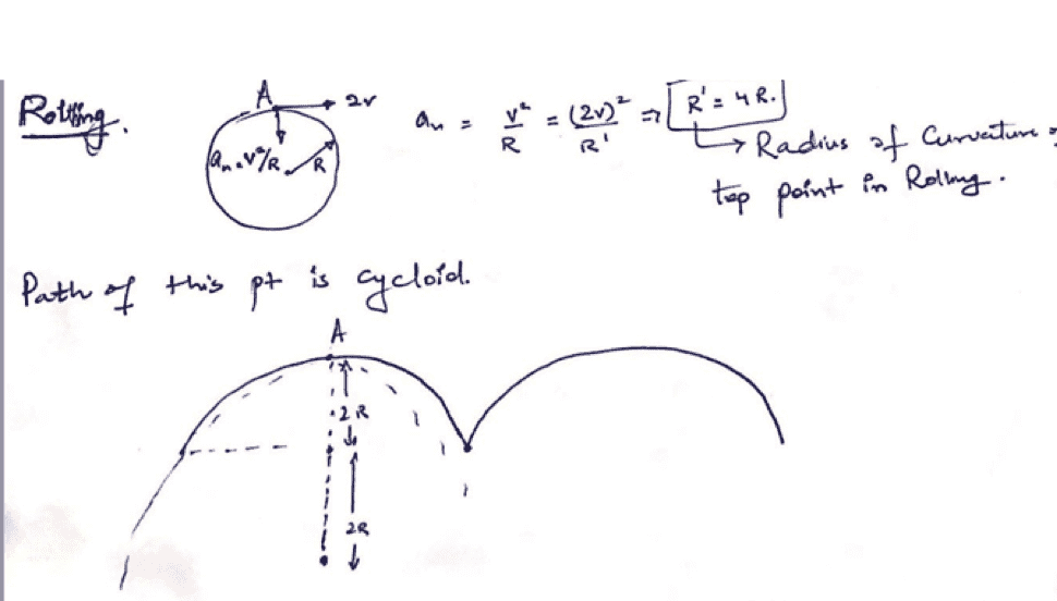 - Participants discuss the relationship between the velocities and accelerations of points A and B, questioning the correctness of their initial assumptions and calculations. There are attempts to derive the radius of curvature using various approaches, including referencing cycloidal motion and relative velocity concepts.