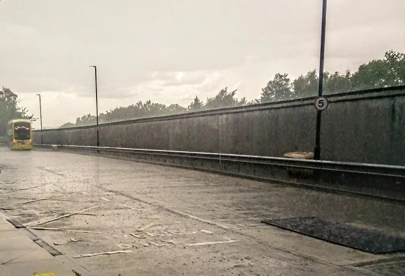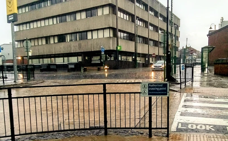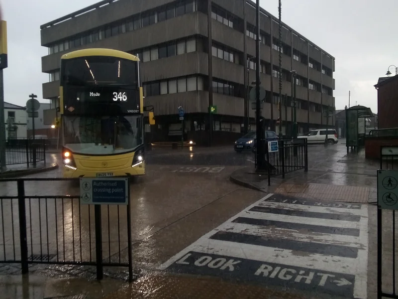 Yeah they go left round the station. I made a dash for the pub but still got soaked.