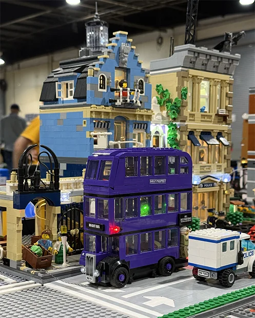 At a model-train show yesterday I saw a nontraditional layout built with Lego bricks.
