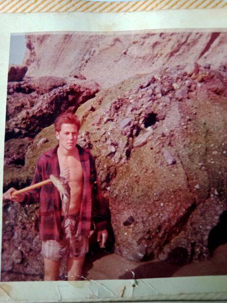 Sneaking in at night, we had to wait for the water to go out long enough to get around the cliff. Again that could be a bit treacherous. But it was worth it. There is nothing like body surfing in the moonlight at midnight. And see the outline of a face in the rock. You can just make it out from this angle. I can still remember lying there at night and looking at that face. I LOVED that place.