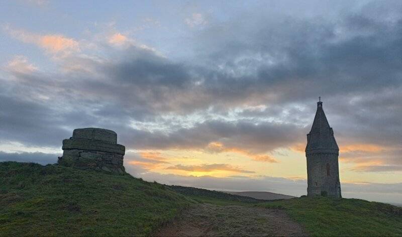Sunrise on the Winter Solstice (21st December 2022) Hartshead Pike Ashton -under -Lyne England.