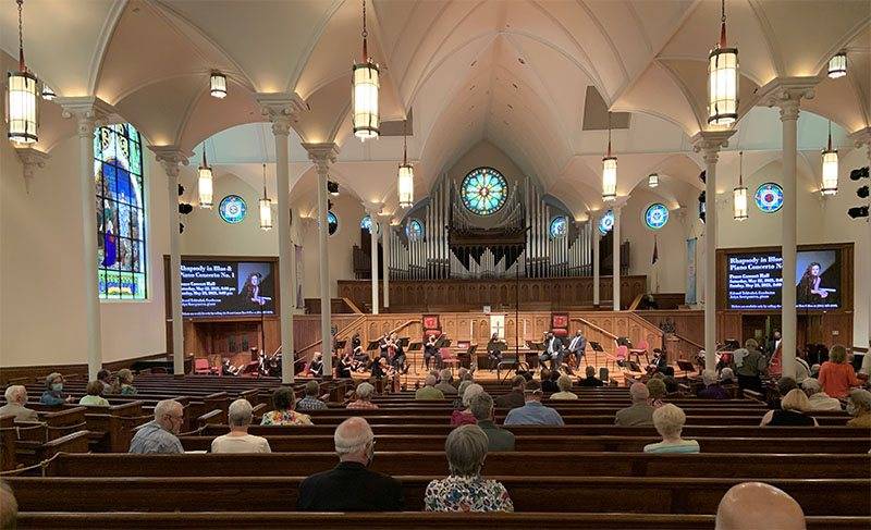 Part of the Greenville [South Carolina] Symphony Orchestra prepares for a concert last Sunday. This was our second excursion for a concert since the pandemic began last year; the first one was the previous Sunday.