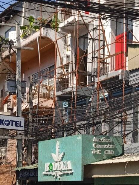 My Thai girlfriend with her new Christmas outfit complement the funky surroundings along Naklua Bay