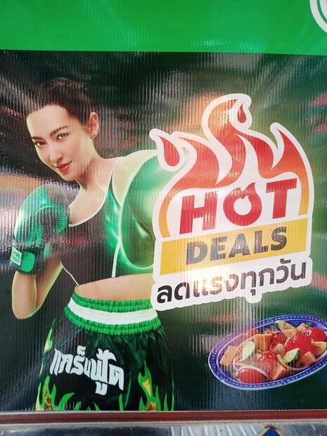 Part of grab food ad poster on bus. Looks like the same girl.