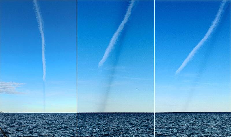 Out sailing yesterday heading East with the sun low in the West. Passed under this contrail and caught this beam of shadow.