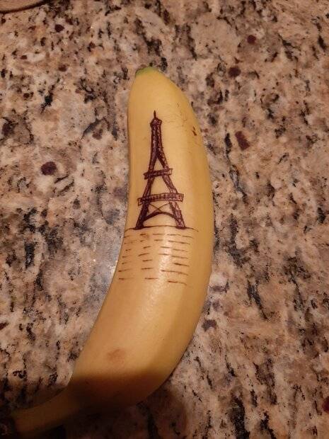 My wife and I are planning trip to Paris and yesterday morning, I found this drawing on my banana set out for work.