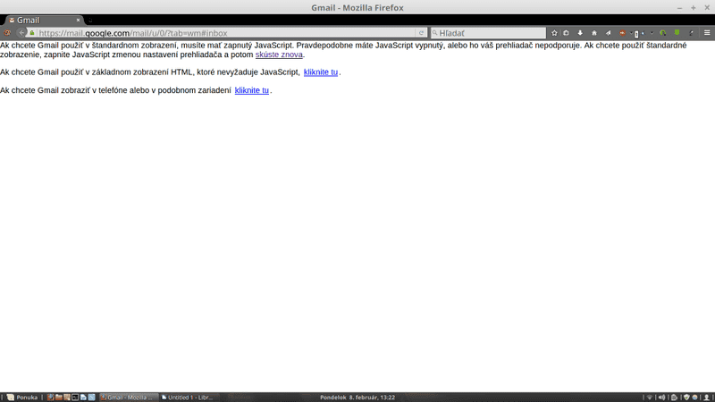 It says that my JS is turned off or not supported. What the heck? All other sites work normally. Youtube, Physics forums, facebook and everything else is OK. It's just Gmail issue. Going to linux forum...