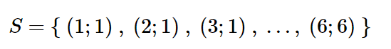 When we launch two fair dies, the space of the events is