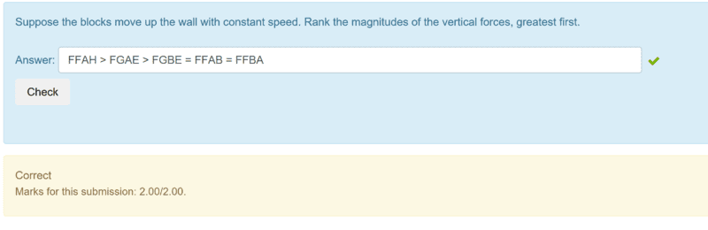 [/B]I am not understanding this problem very much.. i know that the netforce = 0 for both cases since they are accelerating upwards at same rate (shown by velocity vector in middle of boxes) so the acceleration is 0. I don't know how to figure the rankings after solving the equations for the forces..