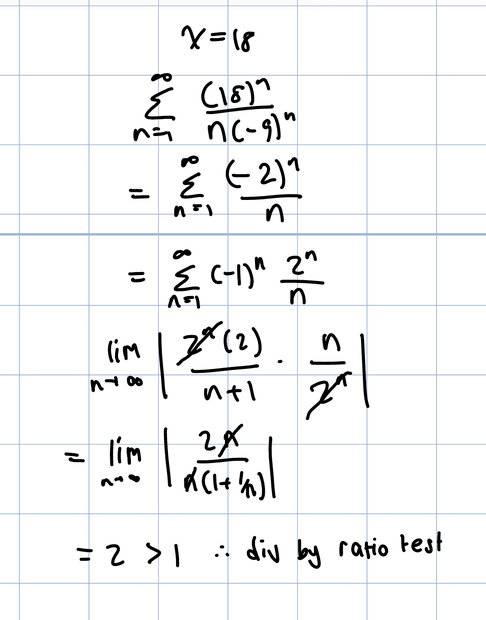 - The original poster attempts to apply both the ratio test and AST to understand the convergence of the series at the endpoint x=18, questioning their conclusions based on the limits obtained. Other participants discuss the importance of careful step-by-step analysis in mathematical reasoning.