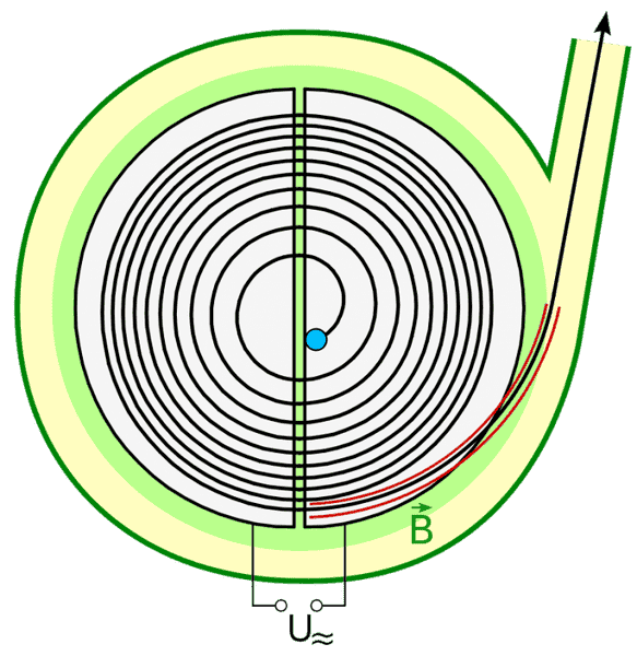 Can a ray gun be created? What would it fire? plasma? I know that the dimendion of the ray gun are too short for what am i going to say, but i want to ask if aside this problem this could work: I thought that maybe the things that you put in the ray gun to charge it are batteries, and that the raygun has inside a vacuum chamber wherr there is a coaxial capacitor, and the electric field is strong enough to break the dielectric, hydrogen pass trough this capacitor and it becomes plasma (like in the lightenings) it gets ionized, the potential difference between the capacitors is mantained by the battery, (in order to minimize it and get a strong enough electric field to break the dielectric we minimize the distance between the "plates" of the capacitor. ( V= E * d) ) then, passed the capacitor the protons are guided by a varying magnetic field in a circular path and accelerated by a "mini" cyclotron, then the beam gets fired... but, how do we control the moment when to take the shoot? I mean after the cycle the proton gets out of the cyclotron, we cannot control when to fire the beam by a mechanism activated by the trigger right? There should be a way to keep the beam inside the ray gun till the trigger is pulled, how can this be done? Another question, once fired the beam would collide with the air, would it be deviated by the target? I guess this depends on the velocity of the beam but a little of deviation would be inevitable right? The light that is seen when the beam is fired is due to the air ionization, what colour is it going to be? Blue?