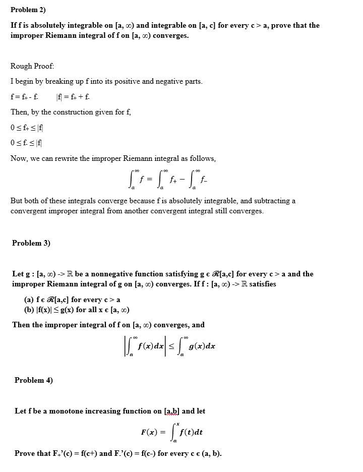 - Some participants question the justification for the positive and negative parts of a function being improper Riemann integrable, suggesting that more justification is needed.
