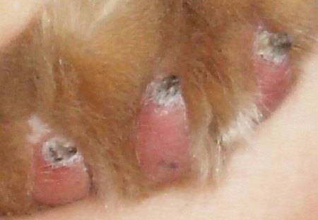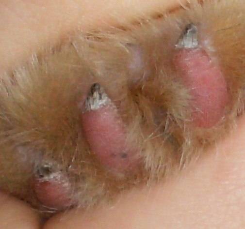 Claw regrowth—Claw regrowth is a consequence of incomplete removal of the ungual crest, and can result in abscess formation and pain.1,2,11,12,28,30 Approximately 3% of declawed cats exhibit claw regrowth,30 but a 10% incidence was reported with a technique that left the flexor surface of the third phalanx in situ.11