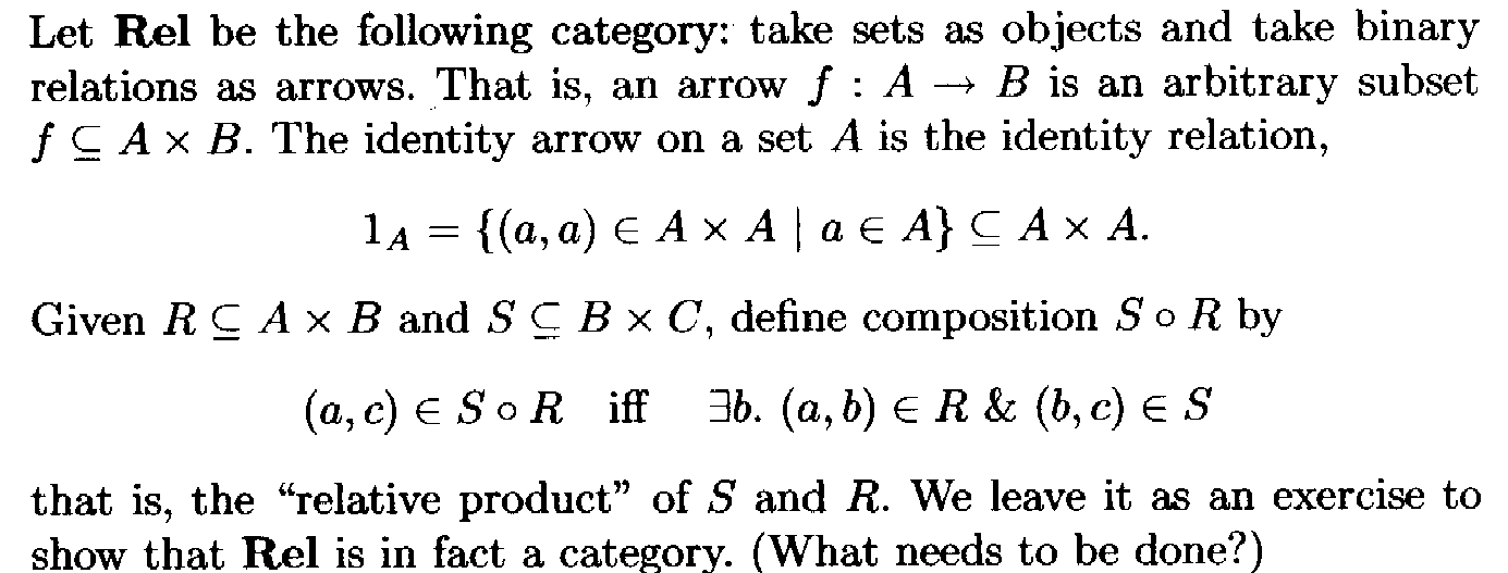 The definition of the category Rel ... reads as follows:View attachment 8387
