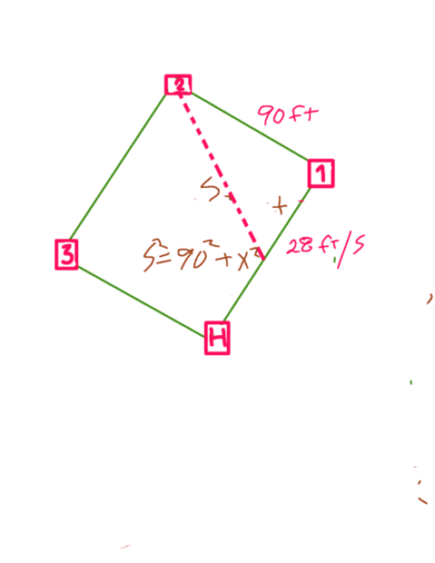 \item [a] At what rate is his distance from second base decreasing when he is halfway to first base?