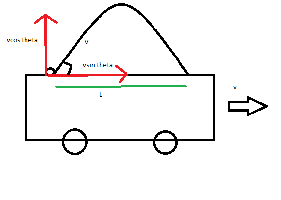 launched inside the truck at tan theta = 4/3 has the same initial speed v (relative to truck).