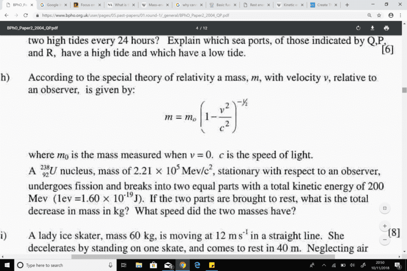 Q : I am confused on how the total energy E=mc^2 = 200 MeV as implied in the work solution.