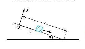 Hence find the block's position (x,y) as a function of time, and the time it takes to reach the bottom.