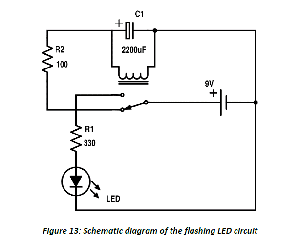 I am having issue understanding what is going on with the circuit below which is supposed to blink an LED by alternatively pulling the switch up and down which results in opening and closing the circuit the LED is part of (lower circuit portion).