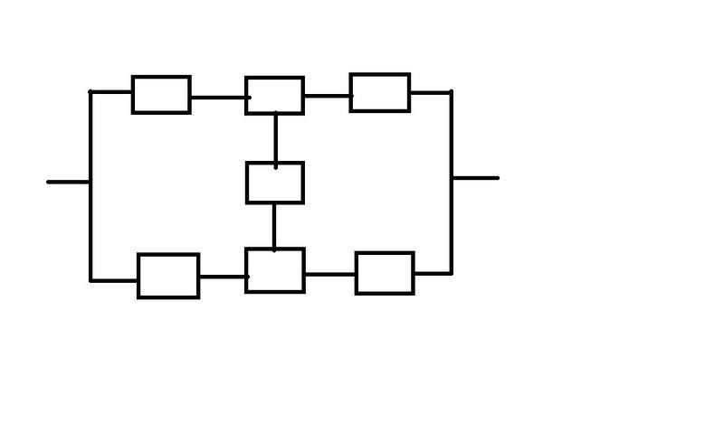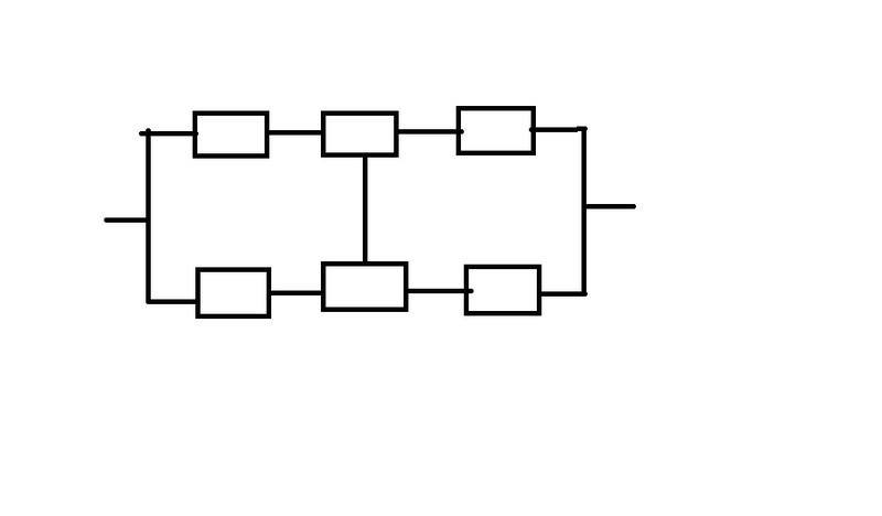 Then, Rs=R7(R1+R6-R1R6)(R2+R5-R2R5)(R3+R4-R3R4) + (1-R7)(R1R2R3+R4R5R6-R1R2R3R4R5R6)