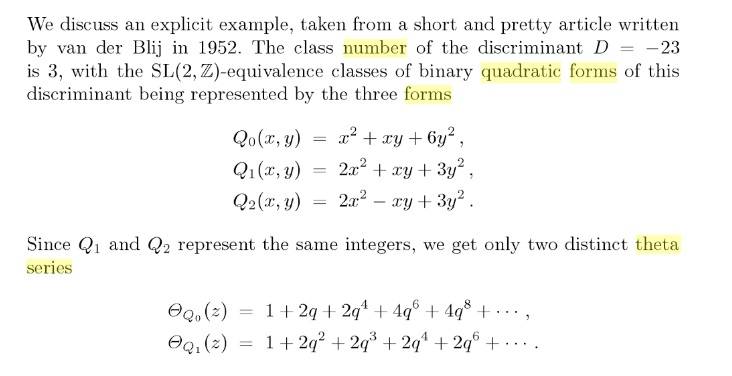 ##\theta(\tau, A) = \sum\limits_{\vec{x}\in Z^{m}} e^{\pi i A[x] \tau } ##