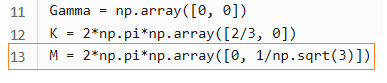 M = 2*np.pi*np.array([0, 1/(np.sqrt(3))])