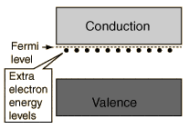 Recently I am working with a research which involves some semiconductors. In the basic level, semiconductor can be classified as intrinsic (undoped) and extrinsic (doped) semiconductor. Then extrinsic semiconductor can be divided into n-type and p-type. For example, the below figure illustrates the n-type semiconductor.