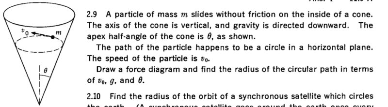Participants are working with a specific problem statement and equations related to forces acting on an object in a conical motion. There is an acknowledgment of potential confusion stemming from different methods of resolving forces and the need for clarity on the assumptions being made in each case.