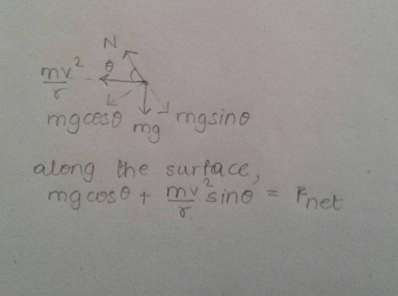 The discussion revolves around the resolution of vectors in mechanics, specifically related to a problem involving a cone and forces acting on an object moving along a curved path. Participants are examining the relationships between normal force, gravitational force, and centripetal acceleration.