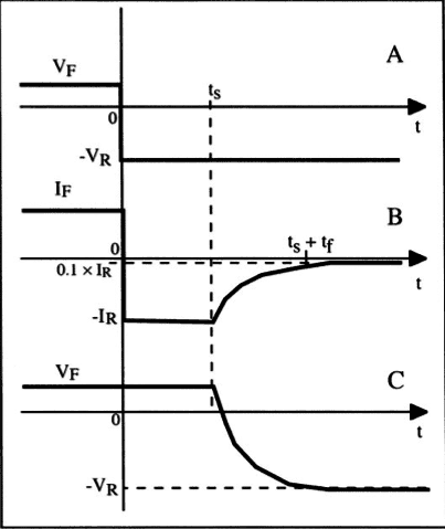 When the diode is in forward bias phase and suddenly we apply a reverse bias voltage, the diode takes time to be fully blocked because of the excess of minority charges that are stored in P and N region. Thus a reverse current appears in the diode for a short time before it is blocked. My question is, is this current a diffusion of the excess of minority carriers that are stocked? If yes, why this happens physically speaking? How the current suddenly becomes negative?