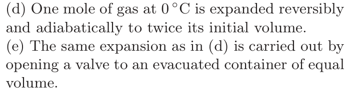The discussion revolves around the change in entropy during reversible and free expansions of a gas. Participants are examining the differences between two parts of a problem, specifically focusing on why the entropy change is zero for one part and not for the other, despite both being described as the same expansion.