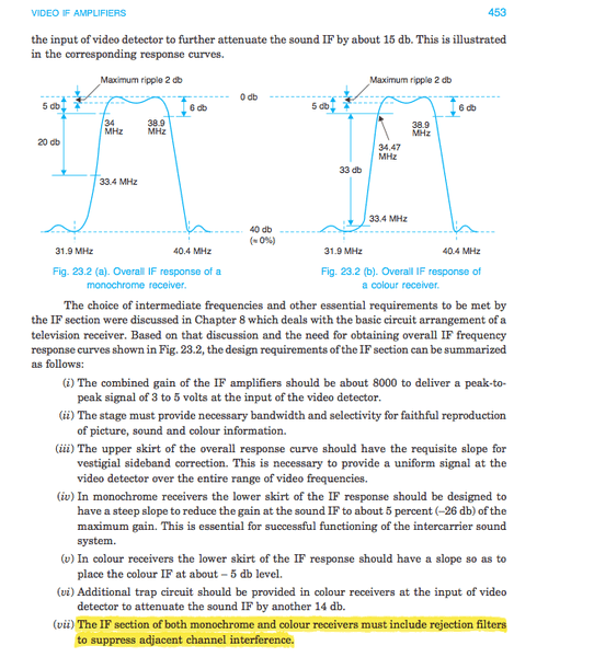 The IF section of both monochrome and colour receivers must include rejection filters to suppress adjacent channel interference...