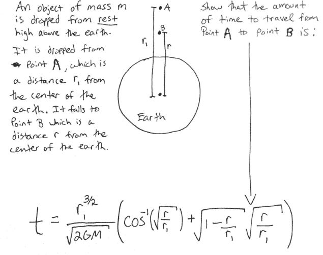 The discussion revolves around deriving an expression for the time taken by an object to move from point A to point B under the influence of gravitational force, relating to Newtonian physics and potentially Kepler's third law. Participants are exploring the connections between energy conservation and differential equations in this context.