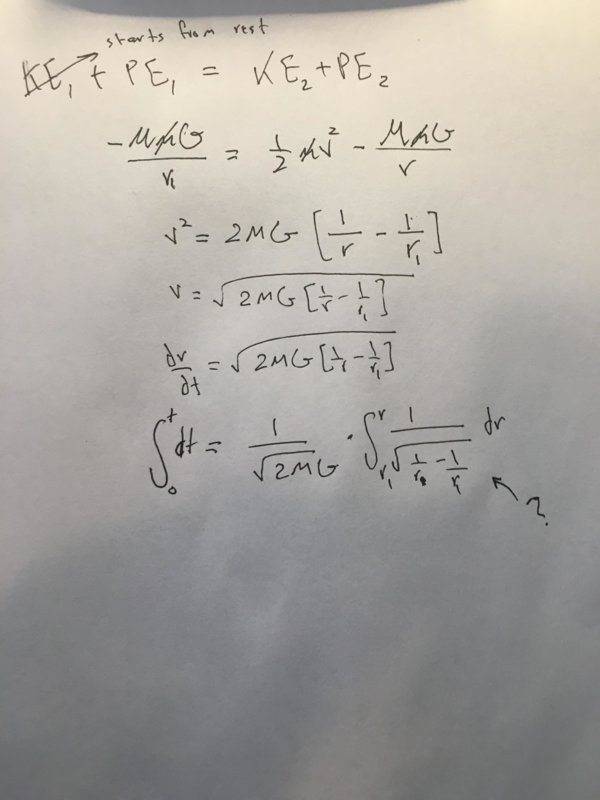- Participants discuss the use of differential equations and conservation of energy to approach the problem. There are mentions of non-linear ordinary differential equations (ODEs) and various attempts to manipulate integrals. Questions arise about the correct setup of equations and the implications of signs in expressions.