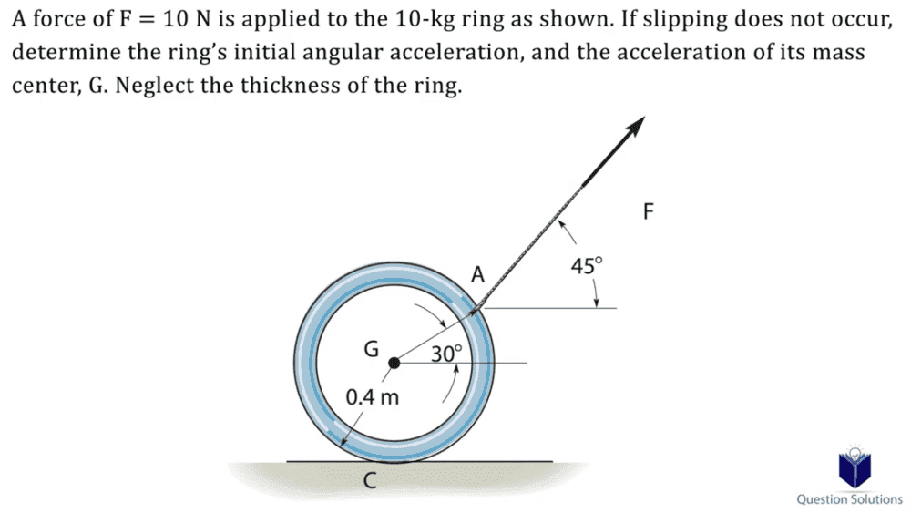 The discussion revolves around the problem of a rigid wheel rolling without slipping and the calculation of its angular acceleration. Participants explore the application of Newton's laws, the role of friction, and the conditions under which the wheel operates, including general planar motion and the forces acting on the wheel.