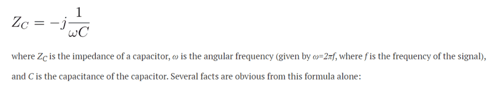Reactance of Capacitor = XC = 1/2 x pi x F x C