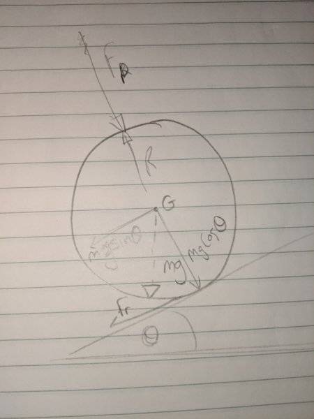 of mass m, and the system is allowed to move freely from rest without slip down a