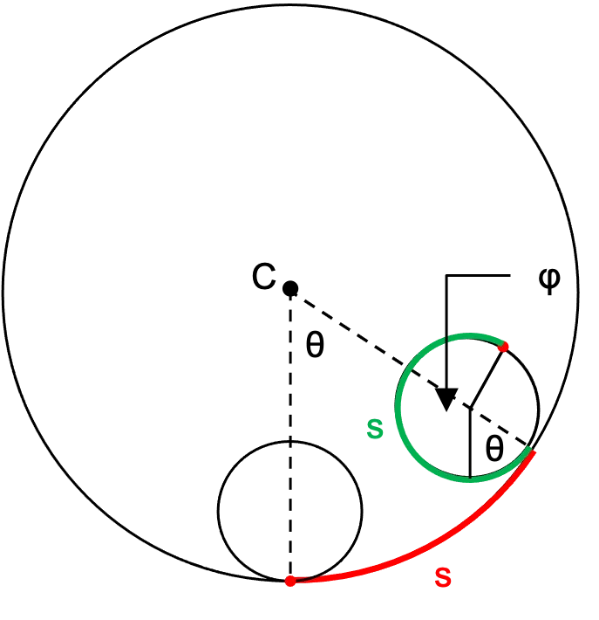 @haruspex is saying is that the 2 conditions(shown in the 2 pics above) are different even regarding the calculation of moment of Inertia. According to him, the moment of Inertia in the 2nd case(when the ball is rotating about 2 axes simultaneously), is NOT = ##\frac{2}{5}mr^{2} + m \left ( R-r \right )^{2} ##. This is what I don't understand, since in post#40, he does agree that mass distribution doesn't change just because the ball is now rotating. And moment of inertia is just a measure of how the mass is distributed about an axis. So my contention is that in this 2nd case too, the moment of Inertia of the ball about the axis passing through point C and perpendicular to the page should be = ##\frac{2}{5}mr^{2} + m \left ( R-r \right )^{2} ##.