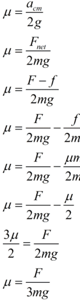 I am solving a question that asks for, what's the minimum coefficient of friction required for a cylinder to roll without slipping? Where the cylinder has a force F acting on its center.