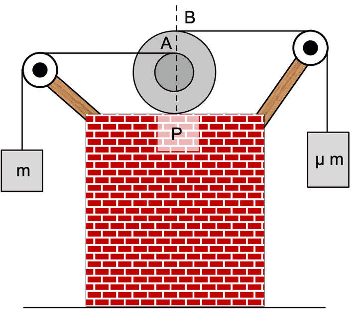 The displacement of force F apparently experiences the same displacement as that of force κF. This is Aristotle's Wheel Paradox in action. The inner wheel has slipped?!?