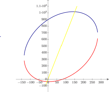 (I attached an image of a plot of the ellipse that needs to be revolved with its axis of revolution represented by a yellow line)