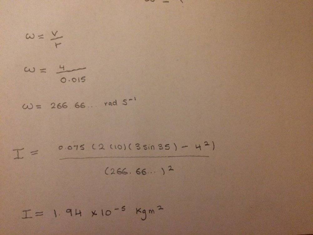 Hence which is why I written down this, in where I then rearrange for I (moment of inertia). However upon doing this, I realize I have an unknown which is omega (angular velocity). How would I work out omega so I then find the moment of inertia of the ball?