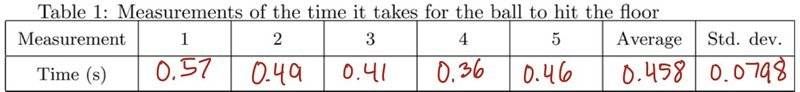 This is an experiment of dropping the ball 5 times at eye level, and we record the seconds that it takes the ball to hit the ground in seconds. The second's measurement has two digits after the decimal. Should the Average and Standard Deviation be rounded to the nearest hundredths place as well?