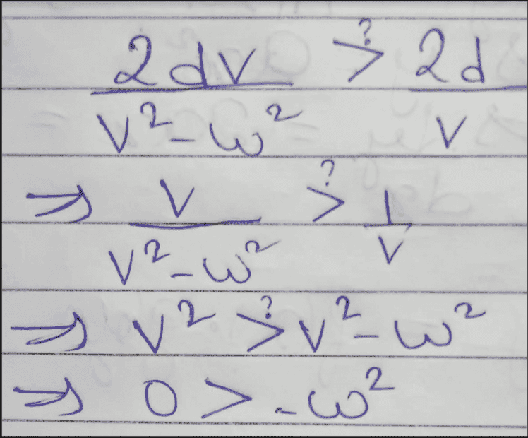 The result, ##\frac{2dw}{w^2-v^2}## has some of the right behavior. But yes, it is fishy. Somehow the variables seem to have been swapped.