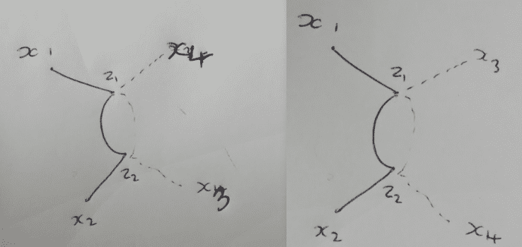 Where solid lines are associated to ##\phi_1(x)##, dotted to ##\phi_2(x)##, and ##z## and ##w## are the internal variables I am integrating over.