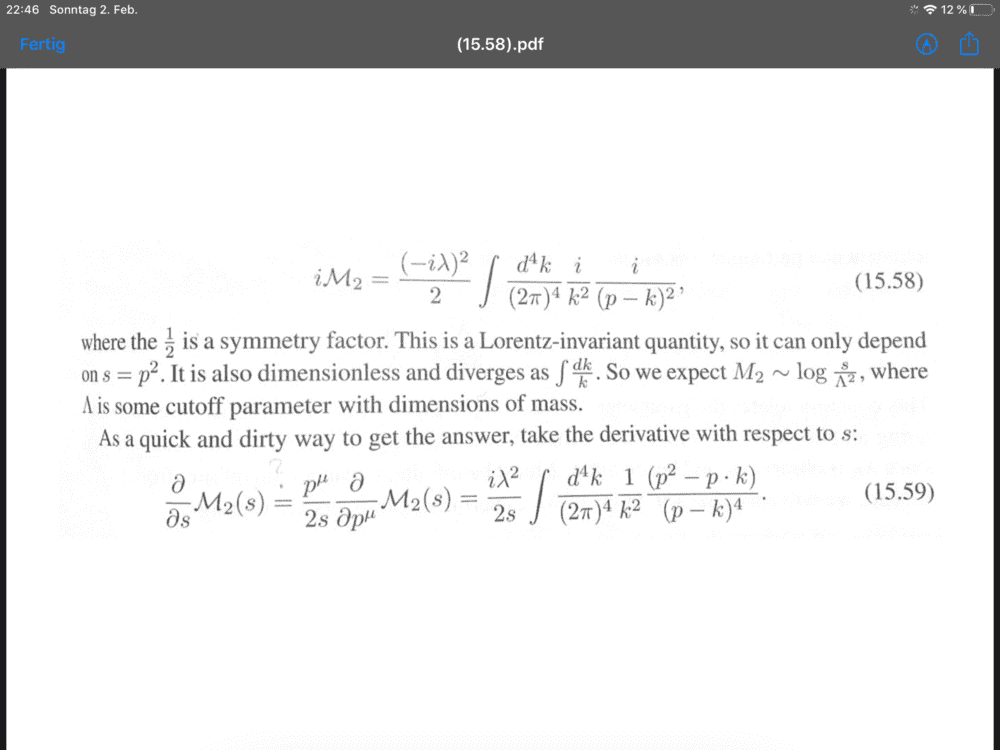 The discussion revolves around understanding a specific equation (15.59) from Schwartz's Quantum Field Theory book. Participants seek clarification on the steps involved in rewriting a derivative and an integral as presented in the text.