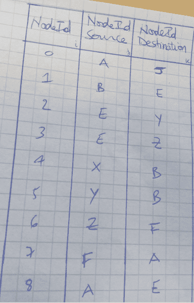 //here i want to bind A with the element located in Destination at the same NodeId index (i=0, A has value J) and store it in a new Array X() and so on